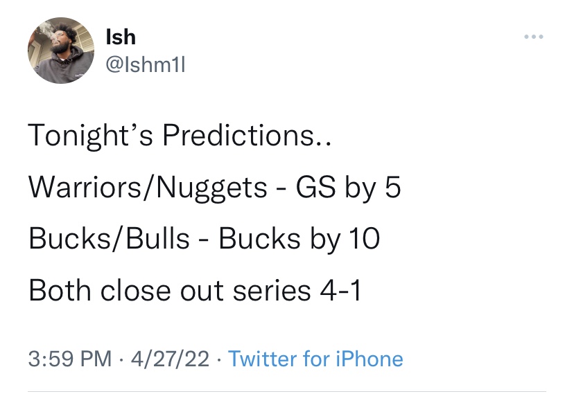 NBA Playoff Picks 4/27 Posted byIshmil LindsayApril 27, 2022April 27, 2022Posted inUncategorized Post Curated by Ish Lindsay Via Twitter Share this: Share on X (Opens in new window) X Share on Facebook (Opens in new window) Facebook Like Loading...